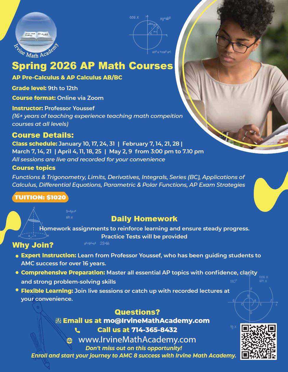 ๐ฏ All Subjects Covered: Pre-Algebra, Algebra, Geometry, Integrated Math I/II/III, AP-Pre-Calculus, Calculus, and Math Competition Training (AMC 8/10/12, AIME, USAMO).